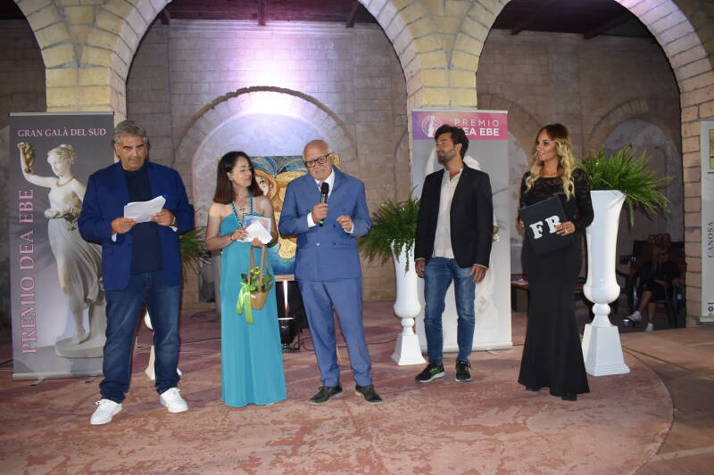 Premiati: Biagio Achille (pittore canosino) Dea Ebe, dedicato a Lucia Lagrasta moglie L. Banfi (Mamma Coraggio dea ebe) ha ritirato il premio Walter Banfi - Zagaria, Roberta Di Laura (Dancer Pugliese Internazionale) Premio LINO BANFI - La maschera Banfi, Paola Comin (top manager) Dea Ebe 2024.