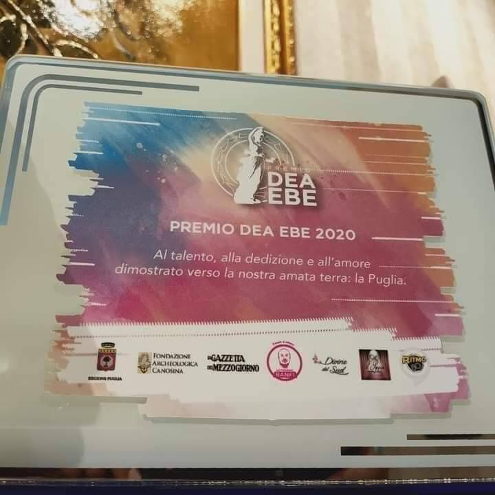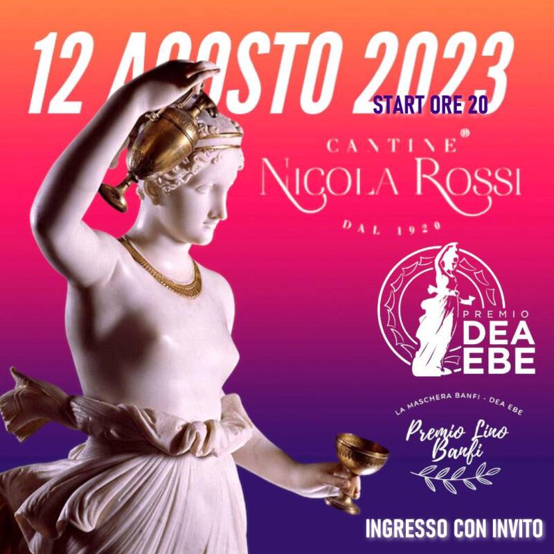 * 2023: - 16 ed.ne : Premio DEA EBE a : AGATA PARADISO (attrice - presentatrice gruppo norba), GIUSEPPE MARCHIONE (artista - pittore dei vip), 45 ANNI ENTE NAZ.LE - ANT. SEZ. CANOSA dott.ssa Carmelinda Lombardi, PREMIO speciale "LA BORGATA" n.3 AZIENDE FRAZIONE LOCONIA (AGRICOOP , ORTOFRUTTA CANDELA, AGRILOCONIA), Premio speciale "MAMMA CORAGGIO" ad Angela Cicciopastore, Premio Dea Ebe a Mr. PHINO (cabarettista romano), Ing. Nunzio Valentino (manager), Premio Italy Dea Ebe a ROBERTA DI LAURA (International dancer), PROF. Agostino PICICCO (scrittore), dott.ssa Anna DI CHIO (scrittrice), Premio la maschera Banfi a Monica Paciolla (soprano), Premio virtuale Dea Ebe Azienda Adolfo Amato (consegnato in sede a Natale 2023)