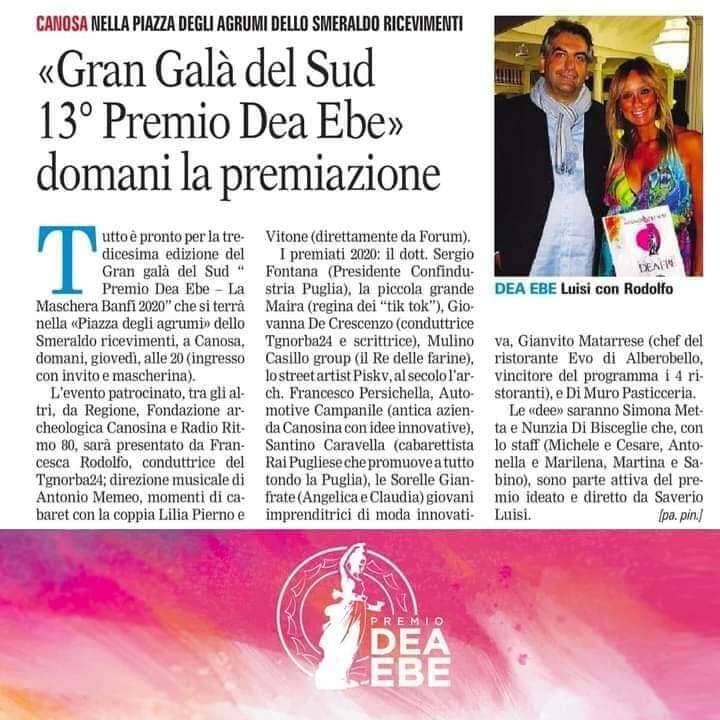 - Grazie a Paolo Pinnelli e alla Gazzetta del Mezzogiorno - Madrina DEA EBE dal 2017 FRANCESCA RODOLFO